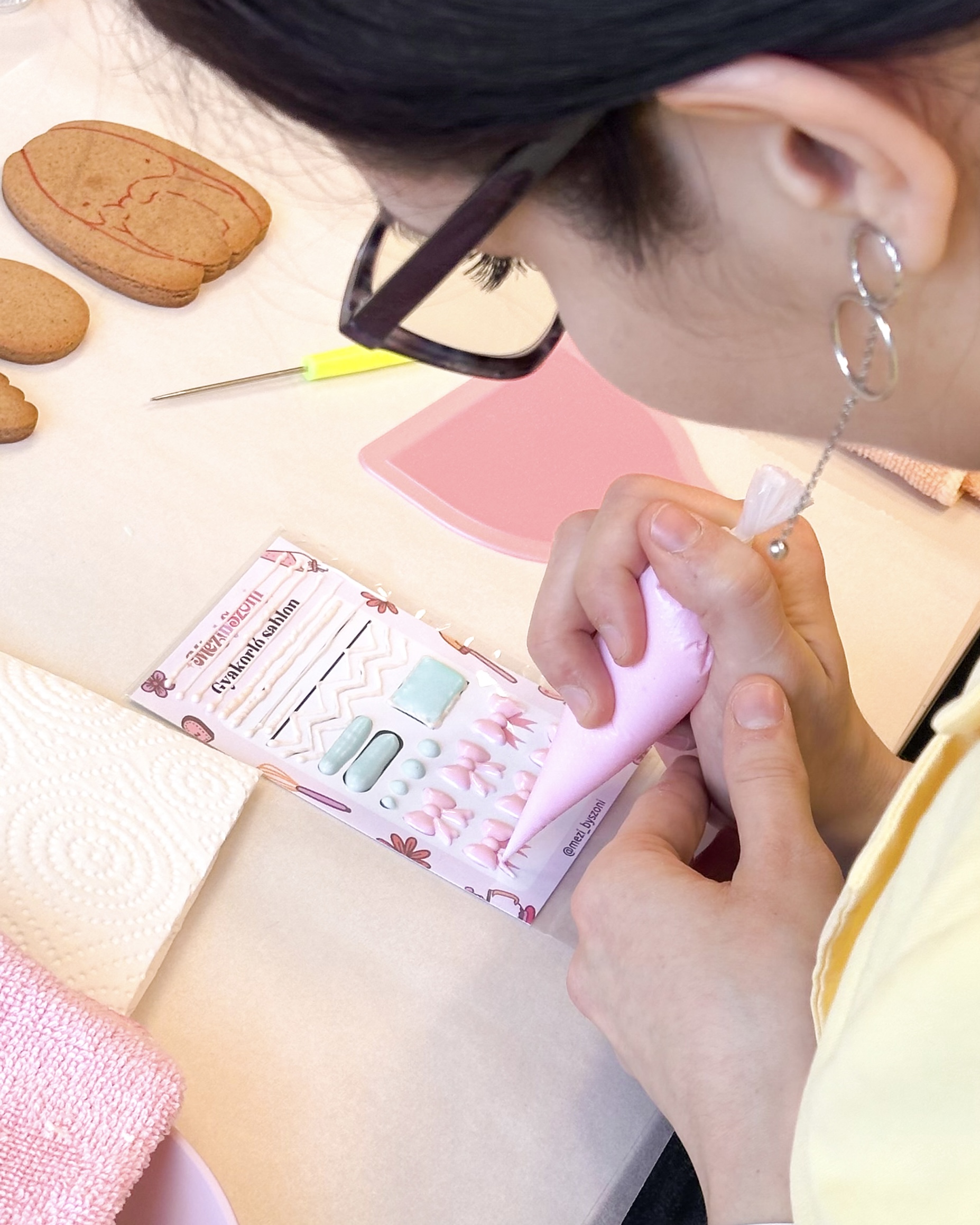During the workshop, you’ll have the opportunity to decorate pre-baked cookies with step-by-step guidance from Hungarian gingerbread expert Szoni. Along the way, she will share advanced tips, tricks, and professional techniques to help you achieve precise and beautiful results. You’ll also learn how to experiment with different icing consistencies, detailing methods, and creative finishes.